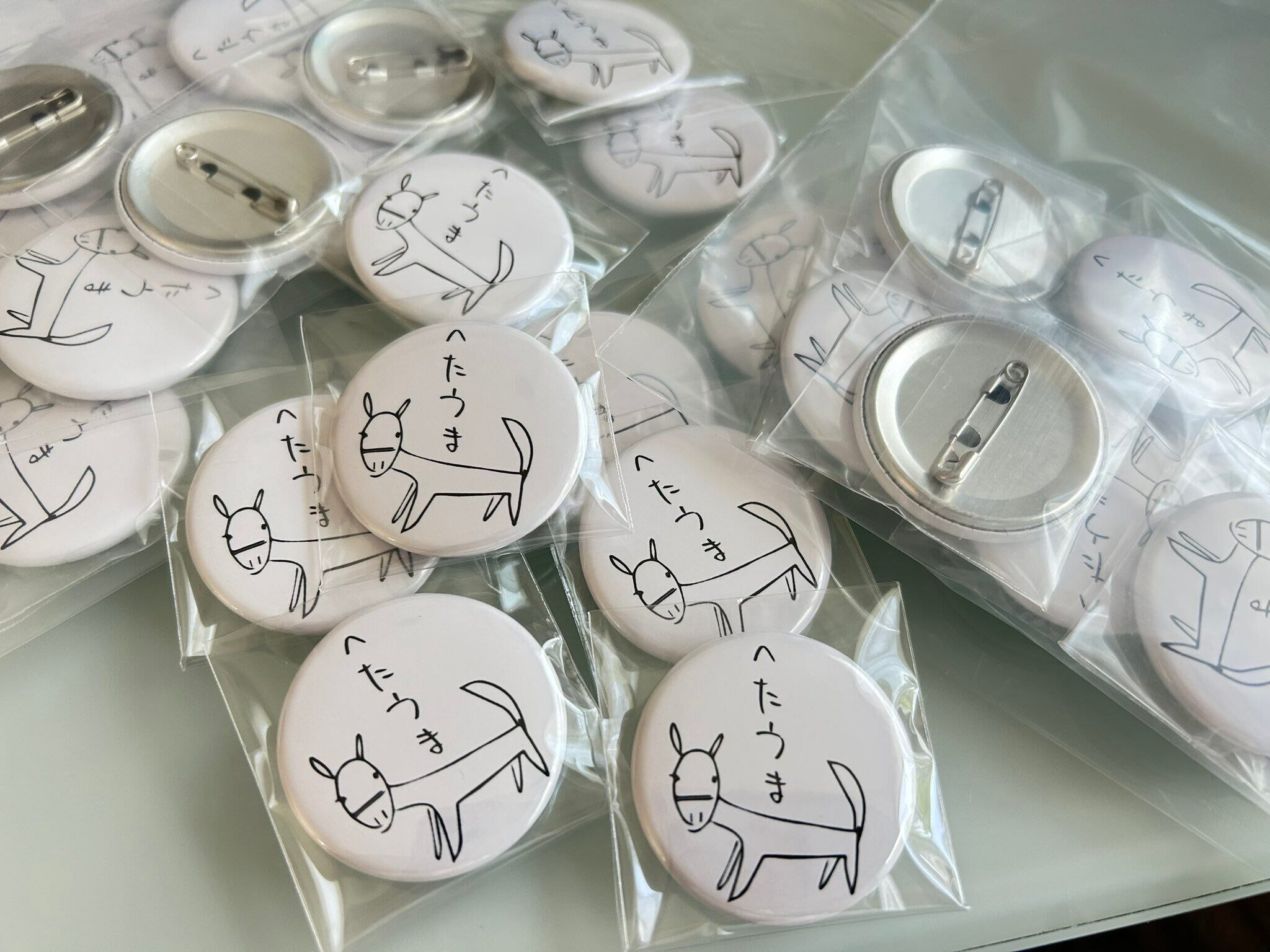 おウマさんのイラストが、缶バッジになりました。